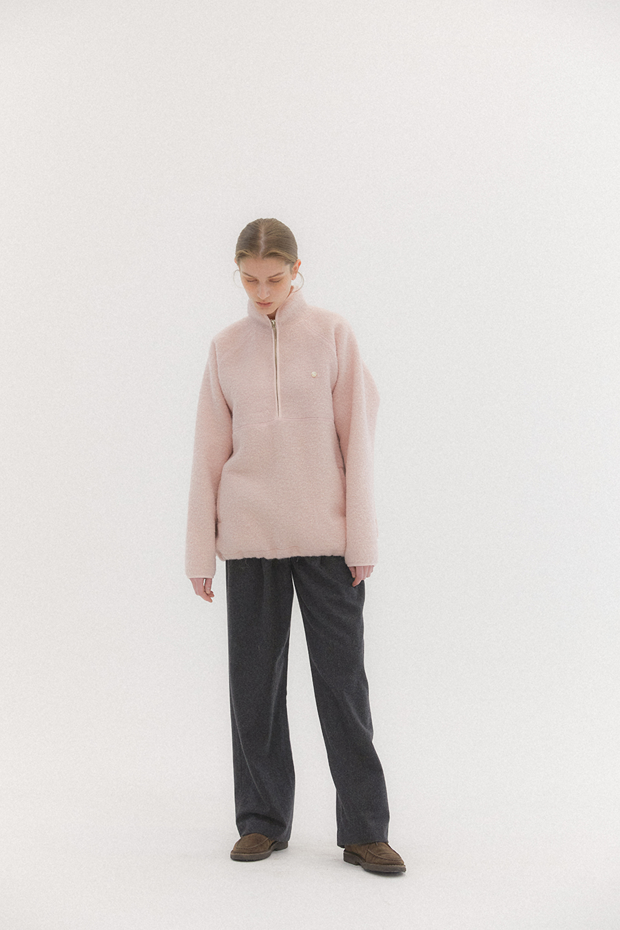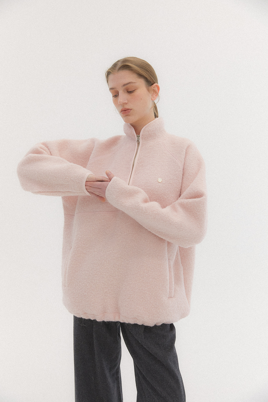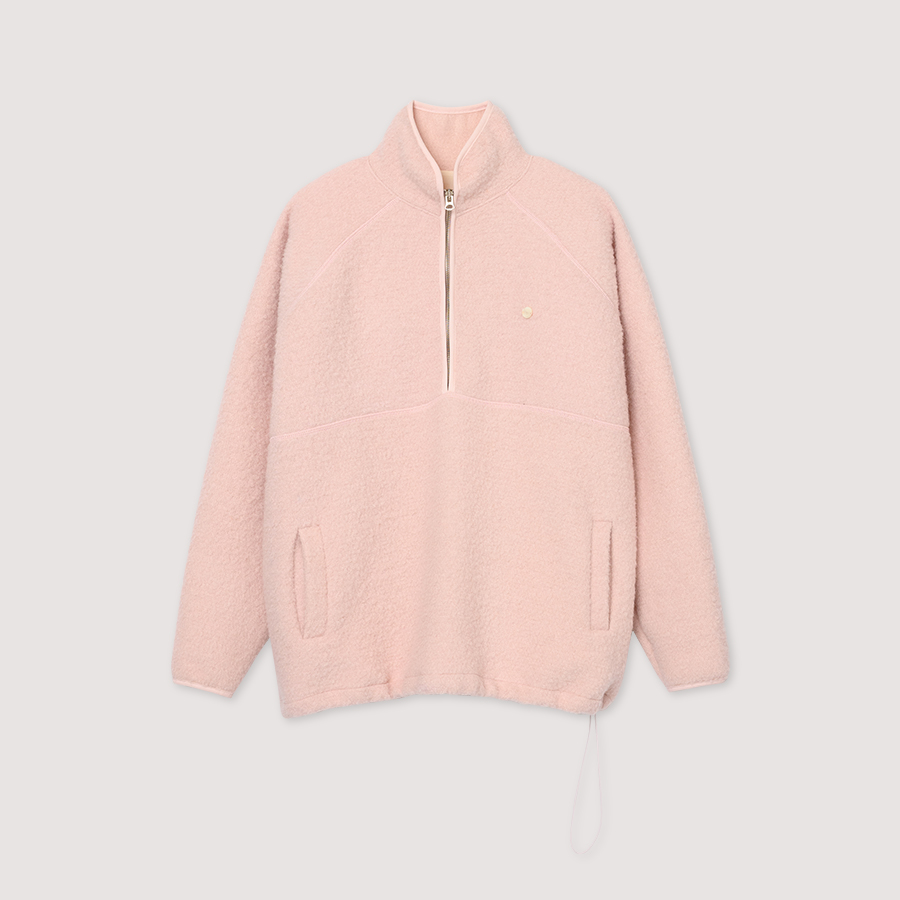 울 함유량이 높은 부클 소재의 플리스 아우터 입니다. 앙고라, 알파카 혼방의 울 원단으로 보온성 높은 소재 사용으로 아웃도어 활동에도 따뜻하고 고급스러우며 특별한 느낌의 Half- Zip pullover 플리스 입니다. 여유로운 핏과 집업 디테일로 활동성을 높였습니다. 밑단 스트링으로 사이즈 조절이 용이합니다.