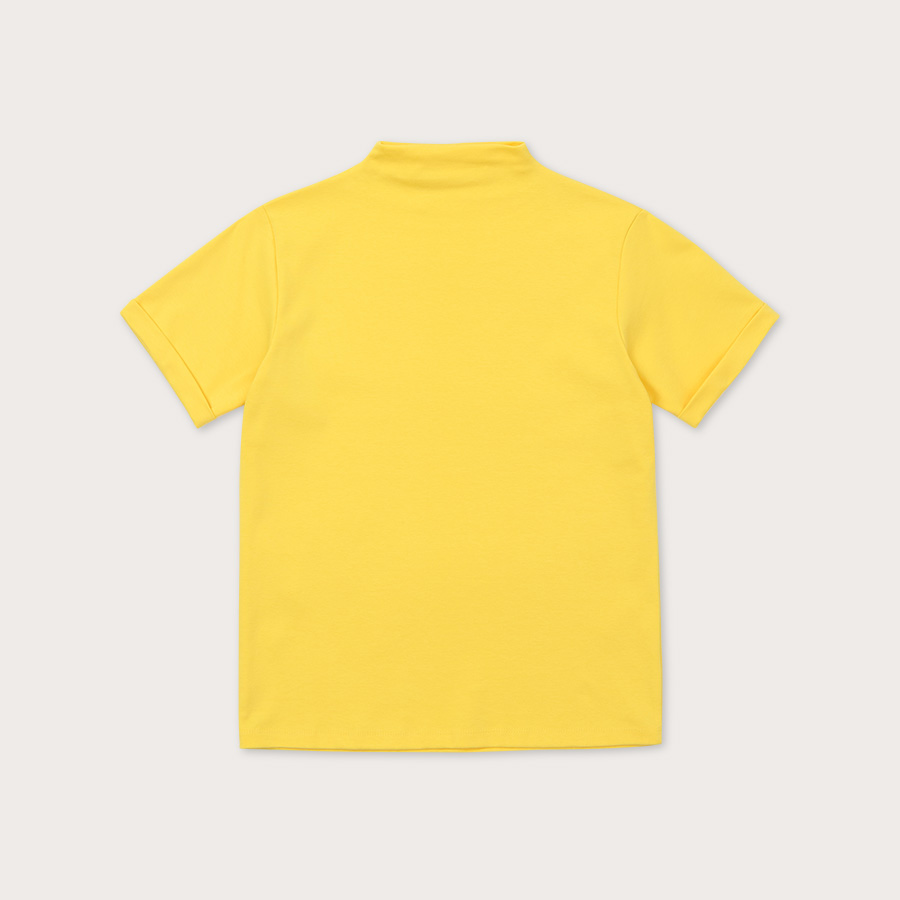우아한 반폴라 네크라인이 돋보이는 실켓 티셔츠 입니다. Cotton 100%의 혼용이지만 실켓가공 처리에서 오는 약간의 신축성이 착용시 기분좋은 부드러움을 선사합니다. 매끄러운 터치감이 특징이며 소매부분 카브라 디테일은 롤업으로도 연출 가능하여 활용도가 높은 아이템입니다.