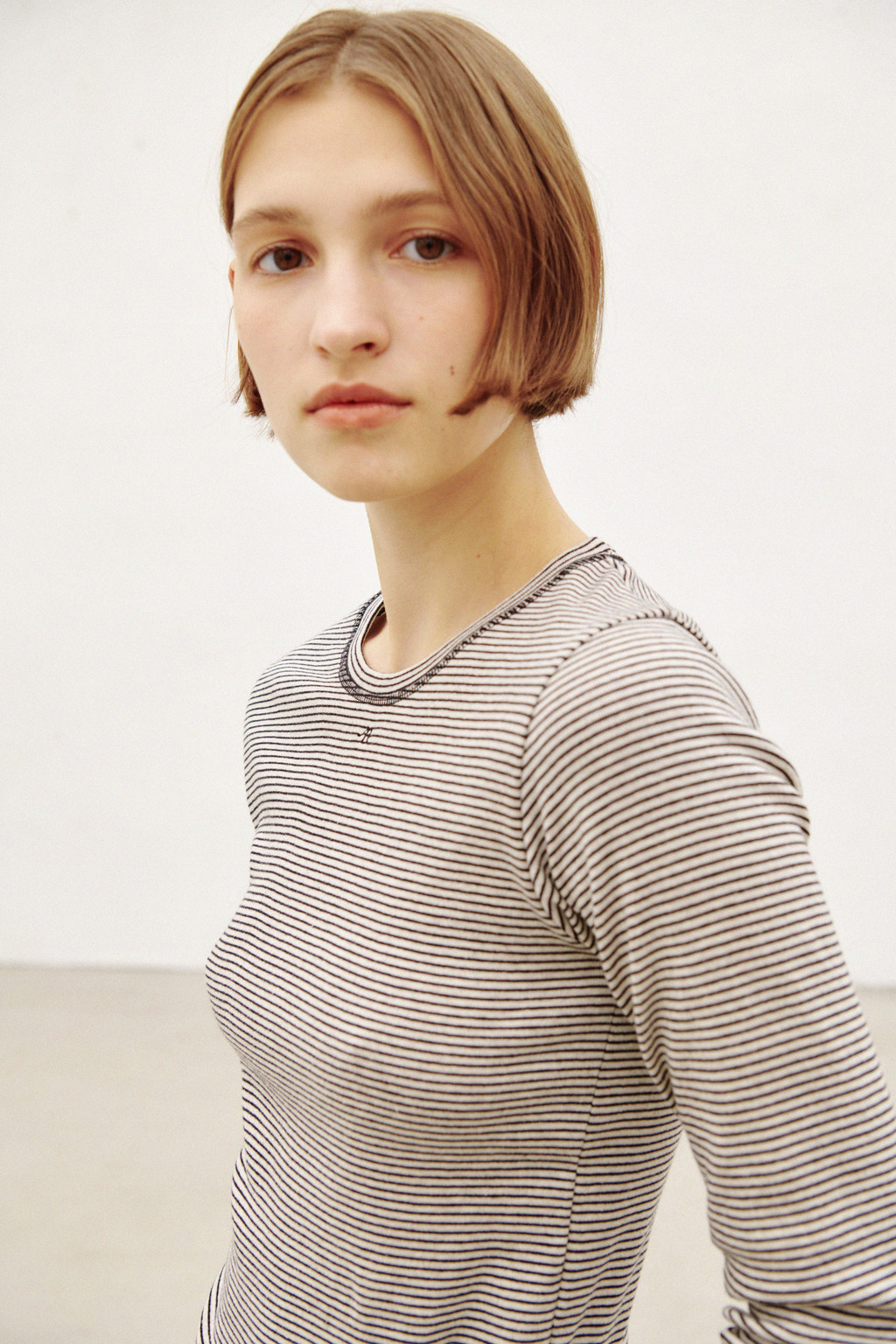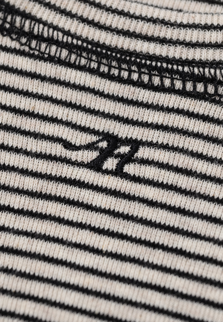 간절기 활용성이 높은 니하운의 빈티지 스트라이프 티셔츠 입니다. 스탠다드 핏에서 오는 살짝 루즈한 느낌의 베이직한 아이템이며 네크라인과 소매부분 배색 스티치 봉제가 특징이며 네크라인에 새로운 디자인의 n 자수가 특징입니다. 후라이스 원단으로 어느정도의 신축성과 톡톡한 느낌으로 내구성과 활동성을 높였습니다.
