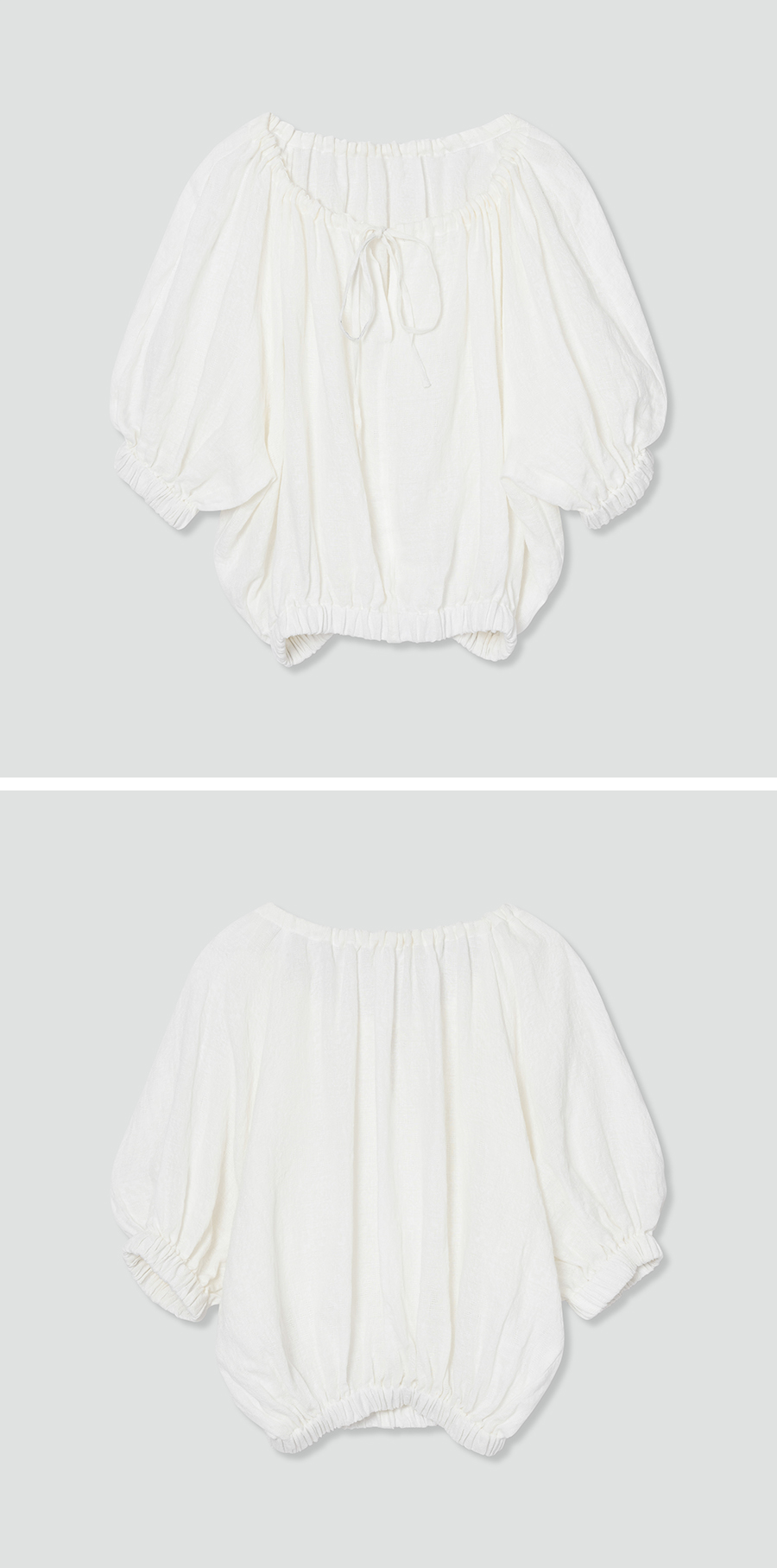 라운드 카라 디자인의 하프 슬리브 기장의 블라우스 입니다.