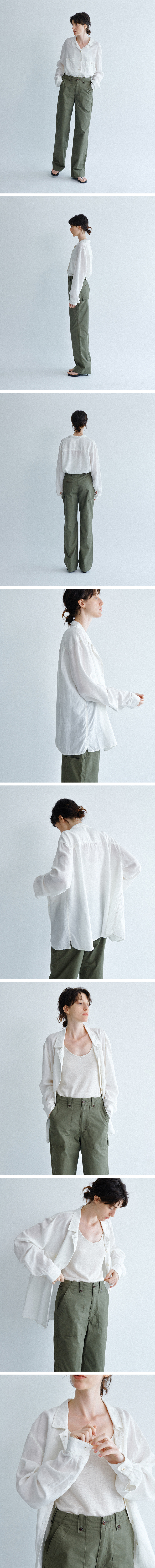 Spring 시즌 많은 사랑을 받은 Blanche Work Jacket 을 셔츠 스타일로 새롭게 전개하였습니다. 린넨, 텐셀 혼방 원단을 사용하여 터치감이 부드럽고 시원한 원단감을 느끼실 수 있습니다.