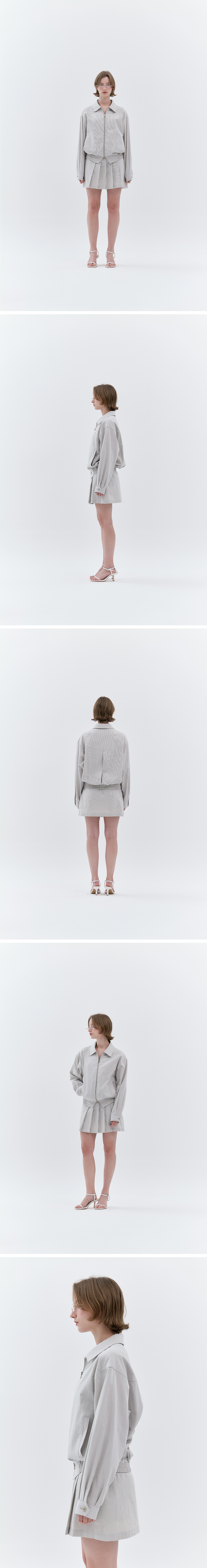 골프 재킷에서 고안된 활동성 높은 해링턴 재킷으로 일본 KUWAMURA사의 최상급 코튼을 사용한 원단의 고급스럽고잔잔한 스트라이프 패턴과 가볍고 탄탄하면서도 부드러운 촉감, 우수한 통기성과 적당한 고시감이 특징입니다.