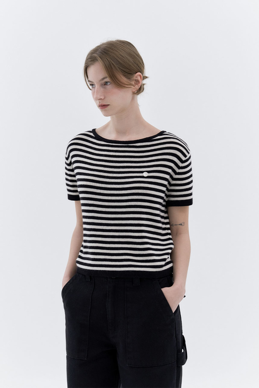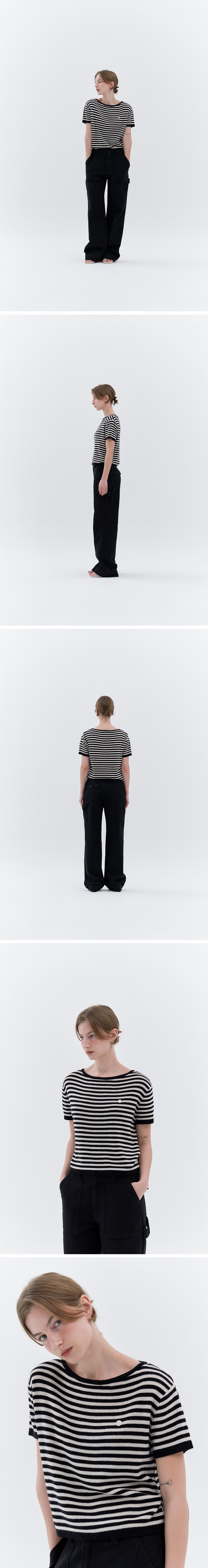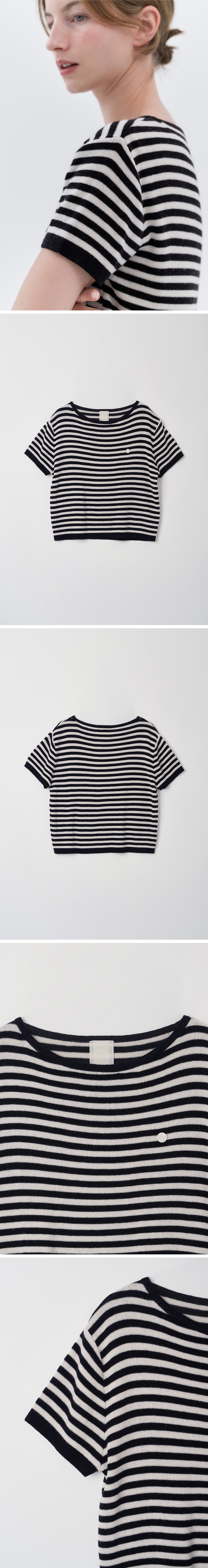 경쾌한 스트라이프를 활용한 반팔 니트입니다.