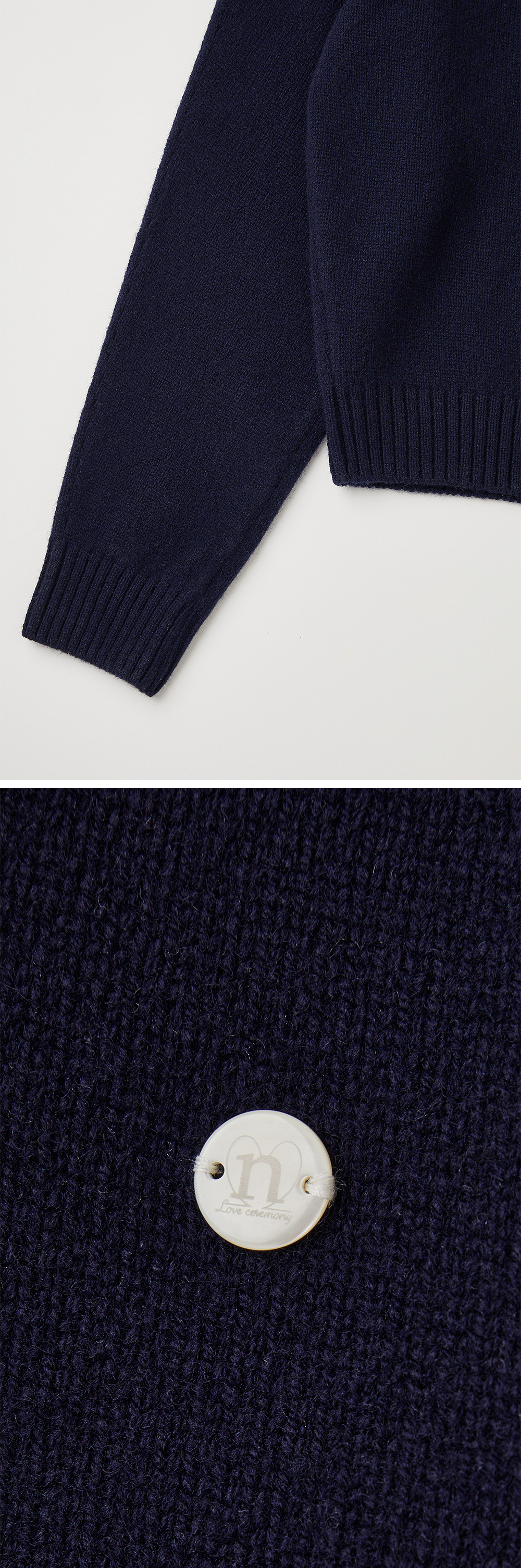 반집업 형태의 여밈 구조로 다양한 연출이 가능하며, 7게이지 멀티 짜임입니다.