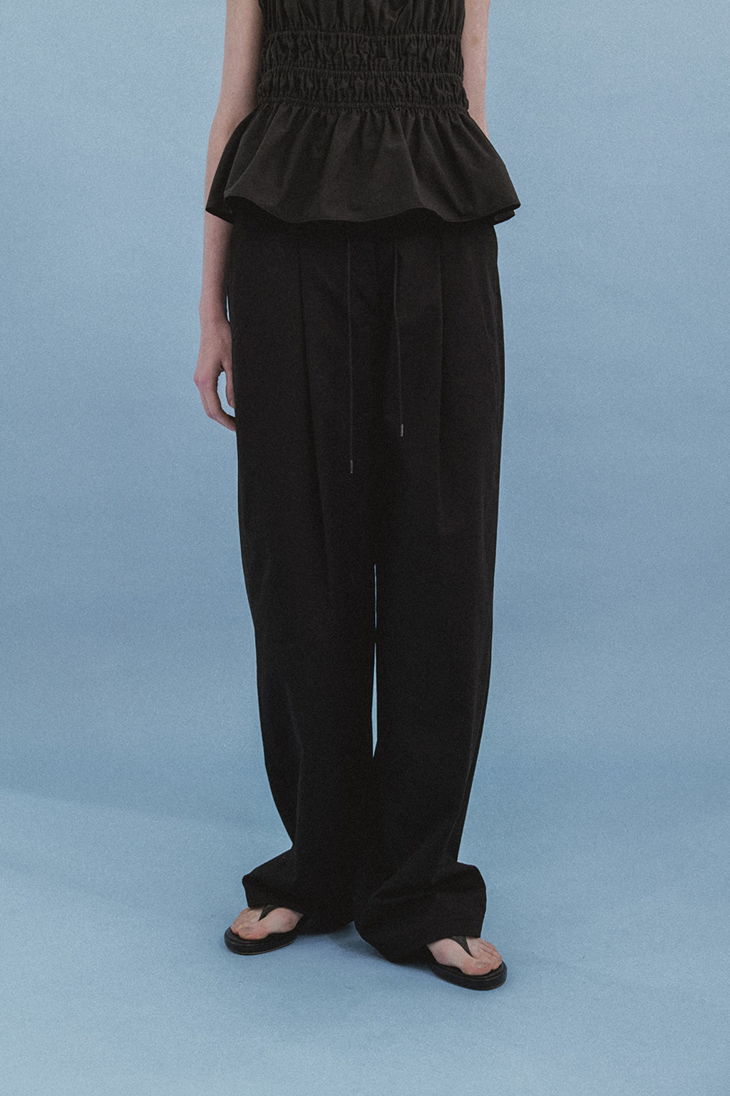 COTTON 100% 원단을 사용한 쾌적한 착용감의 팬츠로 가볍고 전체적으로 여유 있는 실루엣을 가졌으며 밝은컬러의 경우 포켓 안감을 큼직하게 하여 비침을 최소화 하였습니다. 허릿단에 드로스트링을 추가하여 사이즈 조절 및 다양한 스타일링을 연출할 수 있습니다.