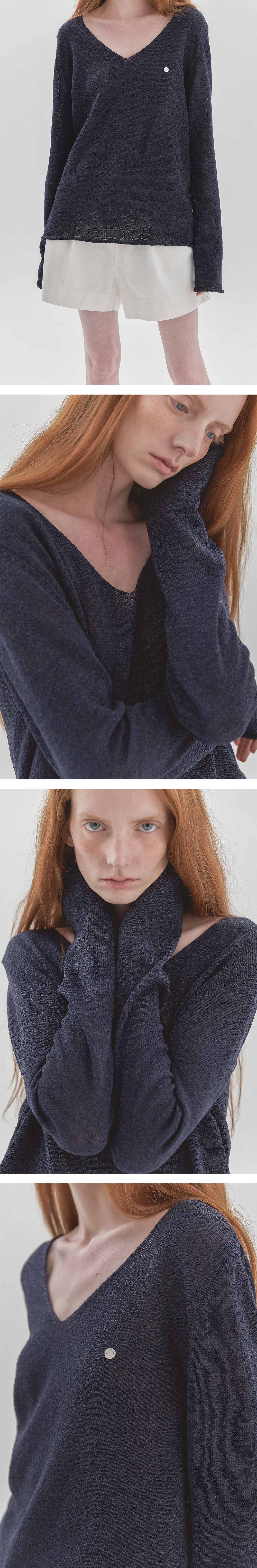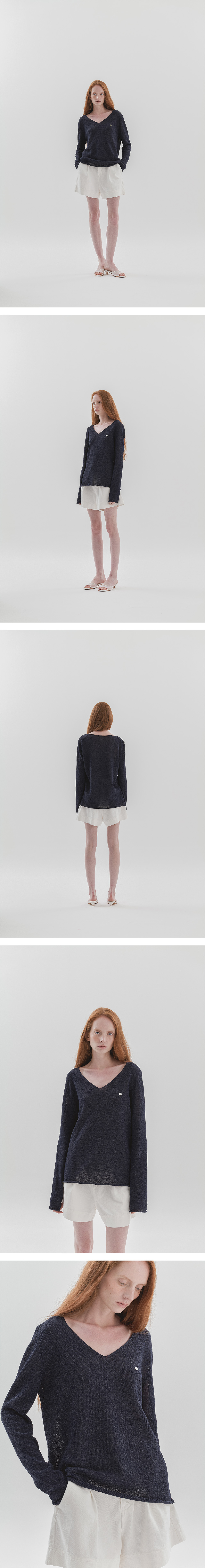 거친 촉감을 자랑하는 페이퍼 원사를 사용한 시원한 터치감의 니트입니다. 와이드 브이넥 니트 풀오버 디자인으로 소매와 밑단은 자연스럽게 롤업 되어 편하게 착용할 수 있습니다. 힙라인 기장의 루즈하고 여유로운 실루엣과 통기성이 우수한 소재로 열 보존성이 낮아 시원한 감촉이 느껴져 여름시즌 쾌적하게 착용하기 좋은 제품입니다.