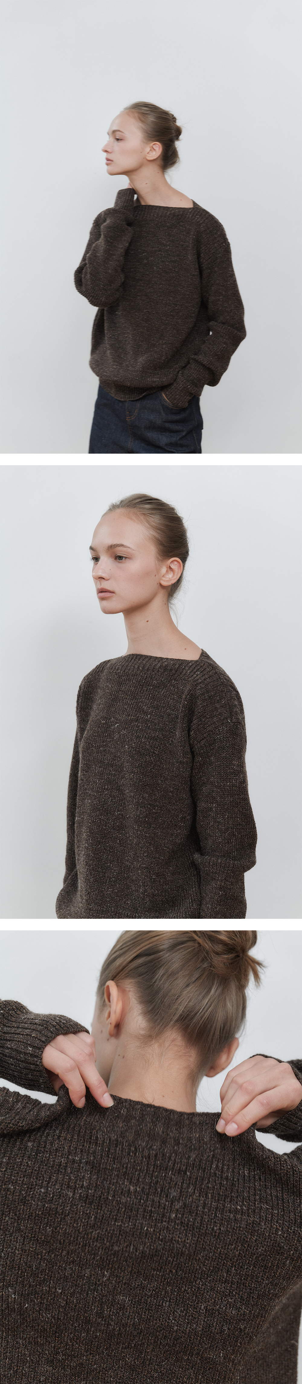 Slashed neck-line 디자인의 풀오버 니트 입니다. 힙 라인 덮는 기장으로 루즈한 실루엣이며, 뱀부,아크릴,울 혼방의 콤비사 사용으로 원사 느낌 자체에서 오는 유니크함이 있습니다. 네크라인 디테일로 우아함과 캐주얼함 모두 연출 가능합니다.