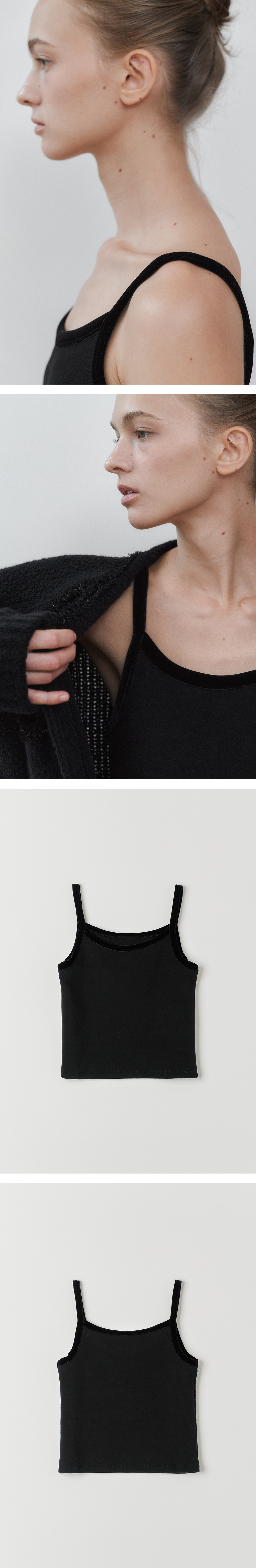 코튼과 스판덱스 혼방 소재로 높은 신축성과 탄력성으로 슬림한 핏 라인을 연출해 주며 깊게 파인 스쿱 넥 라인은 여성스러운 네크라인을 표현하기 적절합니다. 벨벳 리브드 배색 부분은 몸판컬러와 톤온톤으로 매칭되는 컬러 조합으로 포인트 되며 스타일리시한 연출 가능한 아이템입니다.