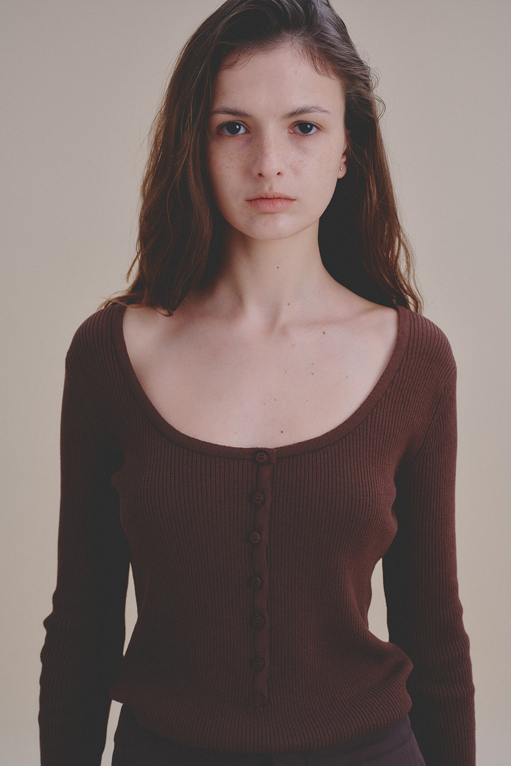와이드 한 스쿱 넥 라인의 헨리넥 니트 입니다.