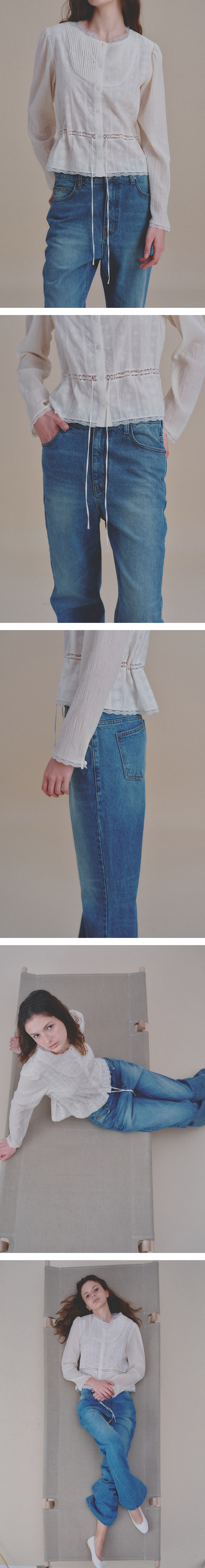 cotton 100% 데님 소재에 스톤 워싱 프로세스를 적용해 빈티지한 워싱 컬러를 구현했습니다.