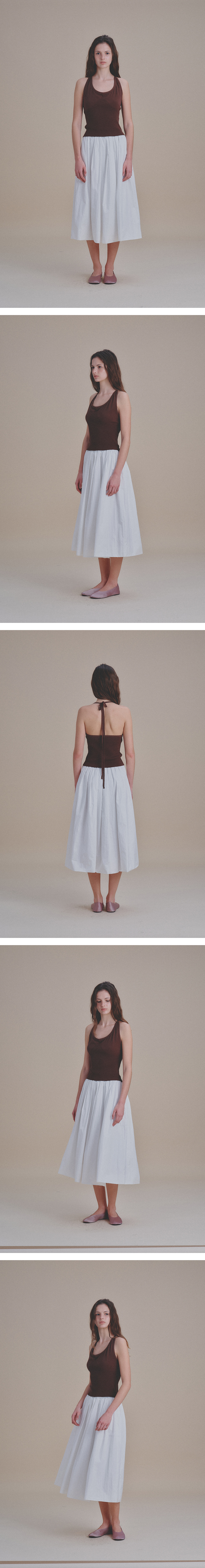 폴리 나일론 혼방 원단 사용으로 산뜻한 광택감이 포인트로 전체 밴딩 디테일로 편안한 착용감을 선사하며, 허리 셔링이 만들어주는 자연스러운 볼륨감이 특징이며, 양 사이드 포켓을 추가하여 활용도를 높였습니다.