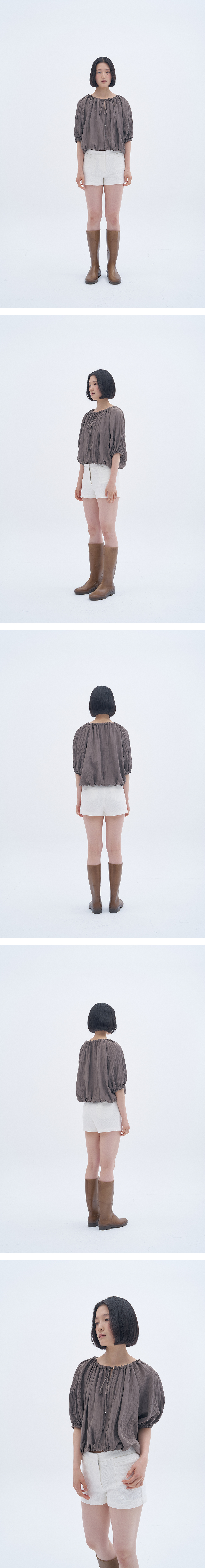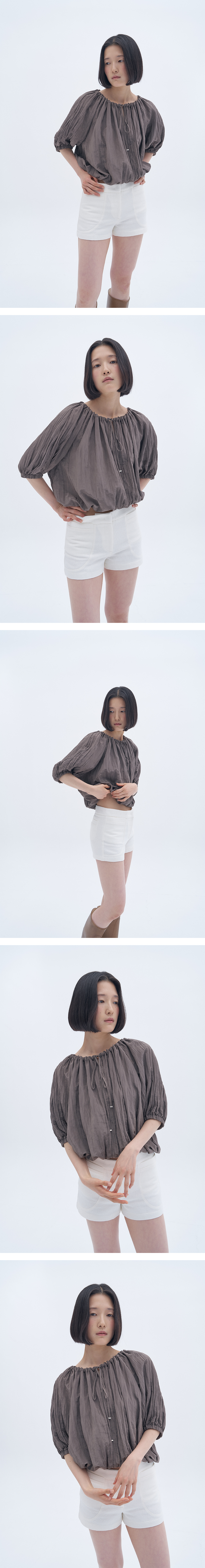 니하운의 스테디셀러인 Coppola Shirring Blouse 의 실루엣을 디벨롭하여, 더 섬세하고 가벼운 무드로 재해석한 블라우스입니다.