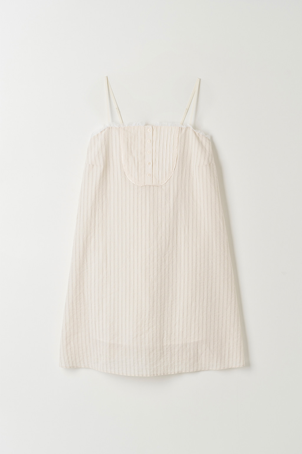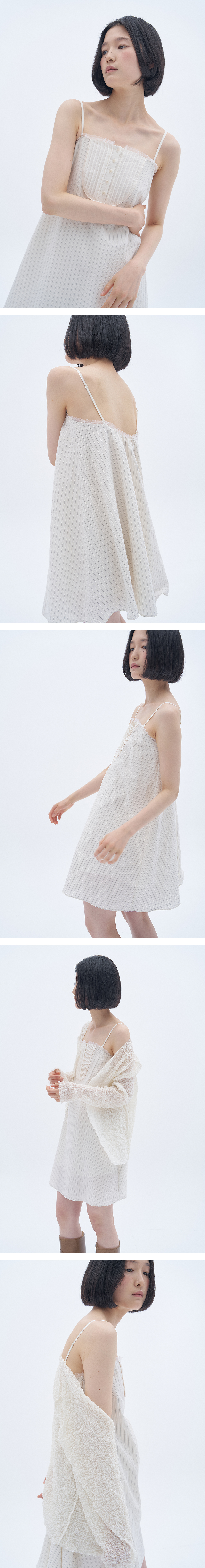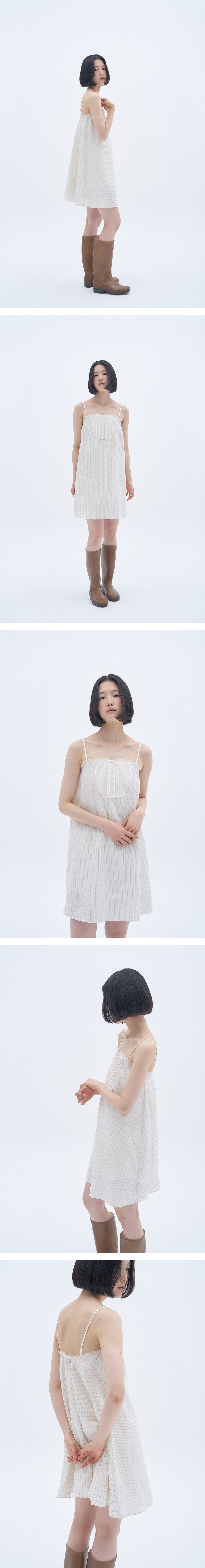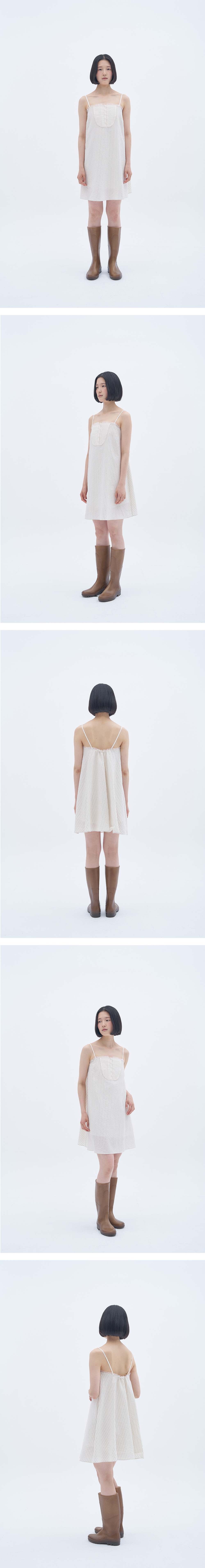 바스트 부분에는 클래식한 터킹 디테일과 버튼 장식이 더해져 은은한 포인트가 되어주며, 어깨끈은 체형에 맞게 길이 조절이 가능합니다.