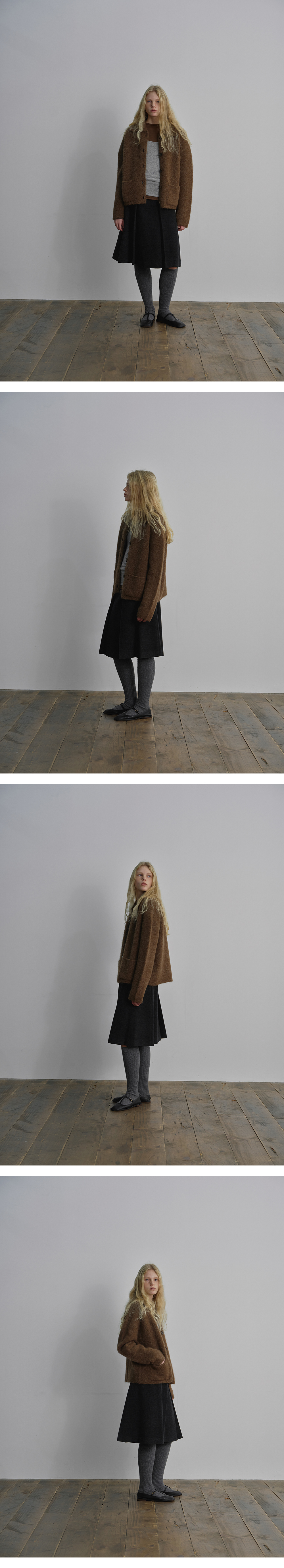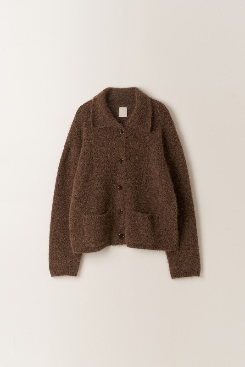 포근함과 따스함이 느껴지는 알파카 혼방의 가디건 입니다. 부드러운 착용감과 흔하지 않은 텍스쳐로, 브러쉬한 원사감과 헤어감이 느껴지는 벌키한 착용감이 특징입니다. 밀도 높은 도톰한 두께감으로 보온성을 높였고, 적당히 고시감 있는 핏을 구현했습니다. 적당히 박시한 실루엣으로 편안한 분위기를 선사하는 아이템이며 내추럴하게 떨어지는 소매라인과 라운드카라 네크라인이 페미닌한 무드를 느껴지게 해줍니다. 이번 시즌 새롭게 선보이는 브라운 컬러는 알파카 헤어감과 잘 어우러져, 따뜻하고 깊이 있는 질감을 더욱 부드럽게 강조해 주며, 너트 코팅 버튼으로 포인트를 주었습니다.